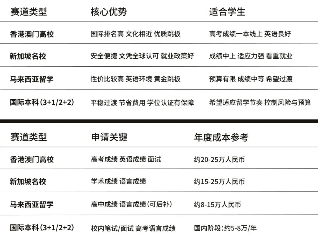 根据家庭经济状况、孩子学术水平和未来职业规划,我们可以将主流替代赛道大致归为几类。下面的表格为你清晰地展示了这几种路径的核心差异,帮助你快速定位。
